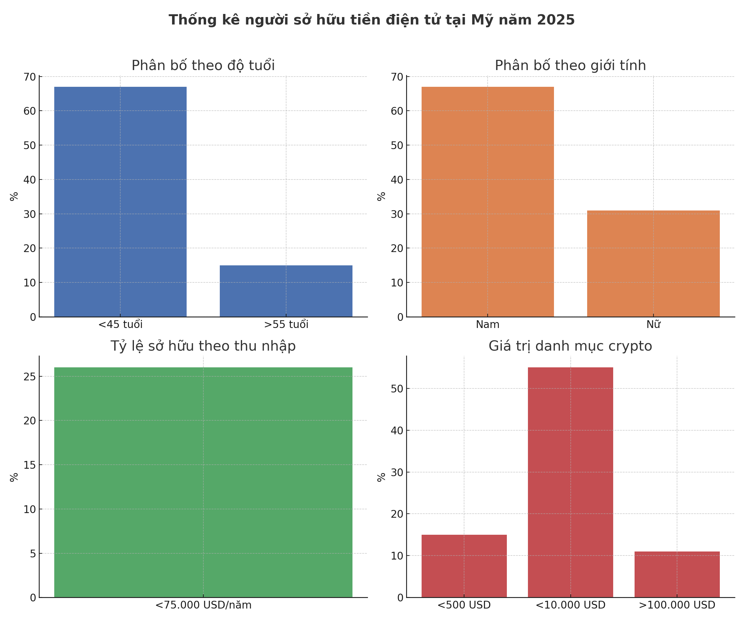 وفقًا لتقرير مالكي العملات المشفرة لعام 2025 الذي كلفت به الجمعية الوطنية للعملات المشفرة وتم تنفيذه بواسطة The Harris Poll، يوجد حاليًا حوالي 55 مليون بالغ في الولايات المتحدة يمتلكون عملات مشفرة. من بين هؤلاء، أفاد 76% أن الأصول الرقمية قد أحدثت تأثيرًا إيجابيًا على حياتهم الشخصية.