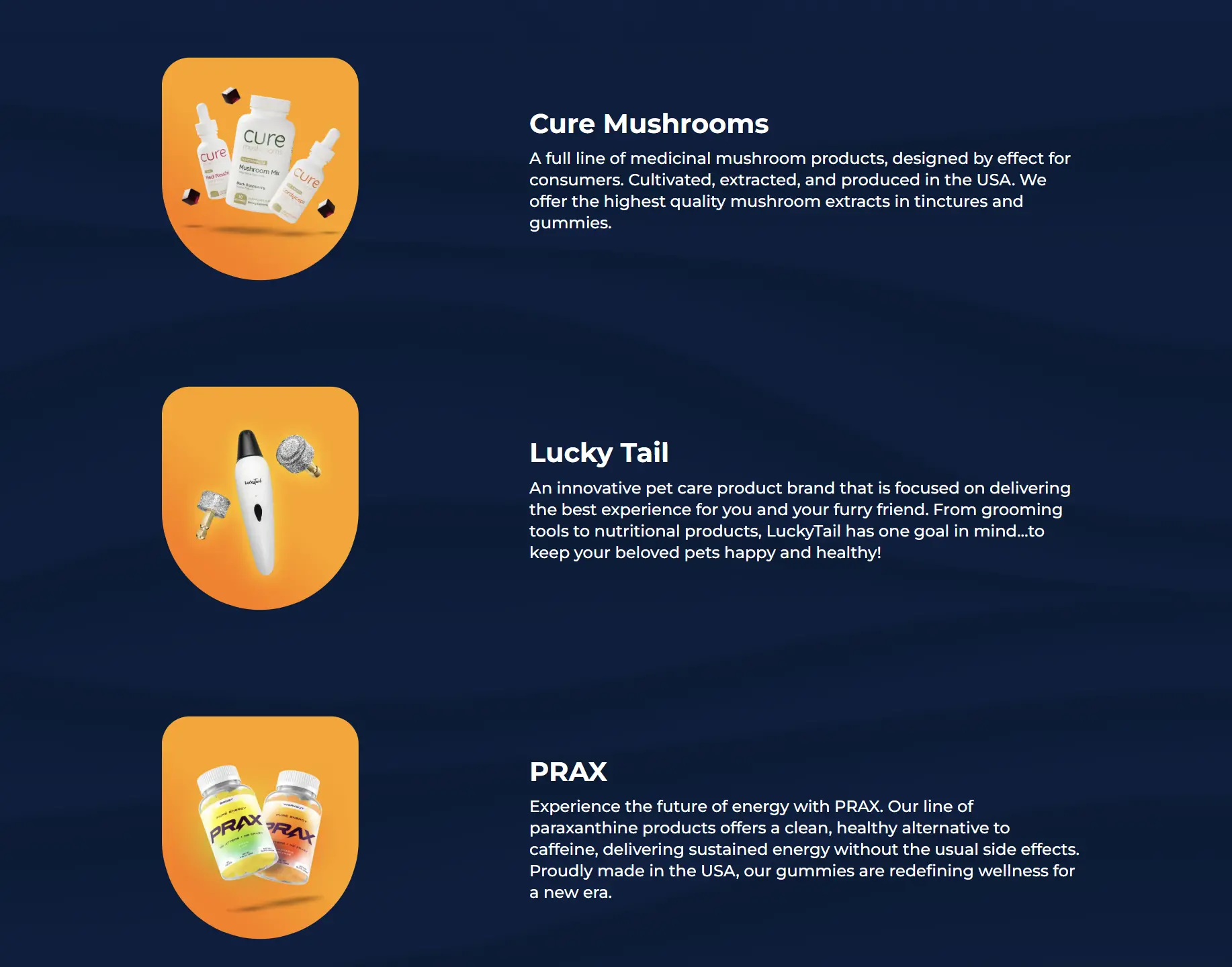 منذ تأسيسها في عام 2018، تركز Upexi على تطوير وتصنيع وتوزيع السلع الاستهلاكية، ولديها العديد من العلامات التجارية المبتكرة، مثل علامة Cure Mushrooms لمنتجات الفطر الطبي، وعلامة LuckyTail للعناية بالحيوانات الأليفة، وسلسلة Prax التي تركز على حلوى الطاقة.