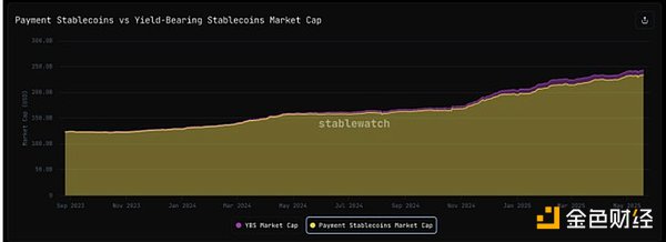 بالمقارنة مع العملات المستقرة ذات أولوية الدفع، لا تزال العملات المستقرة ذات أولوية العائد تمثل حصة صغيرة من سوق العملات المستقرة (3.7%) (حتى الآن، تبلغ القيمة السوقية للعملات المستقرة ذات أولوية العائد 8.98 مليار دولار من إجمالي القيمة السوقية البالغة 242.47 مليار دولار):