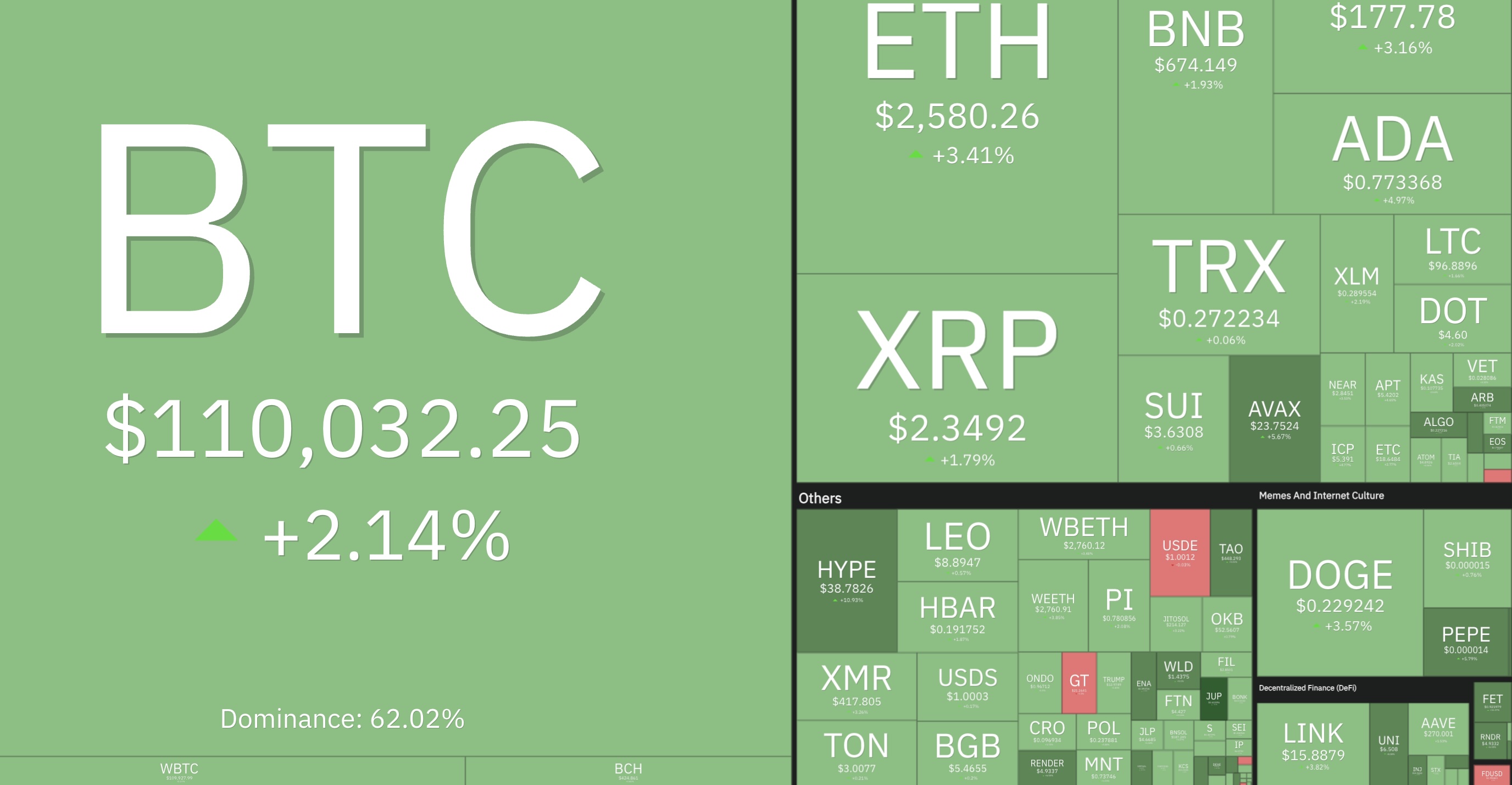 - الأصول ذات المخاطر العالمية تتعافى، حيث ارتفعت كاردانو (ADA) ودوجكوين (DOGE) بنسبة تصل إلى 3%، متصدرة مجموعة أكبر 10 عملات حسب القيمة السوقية.