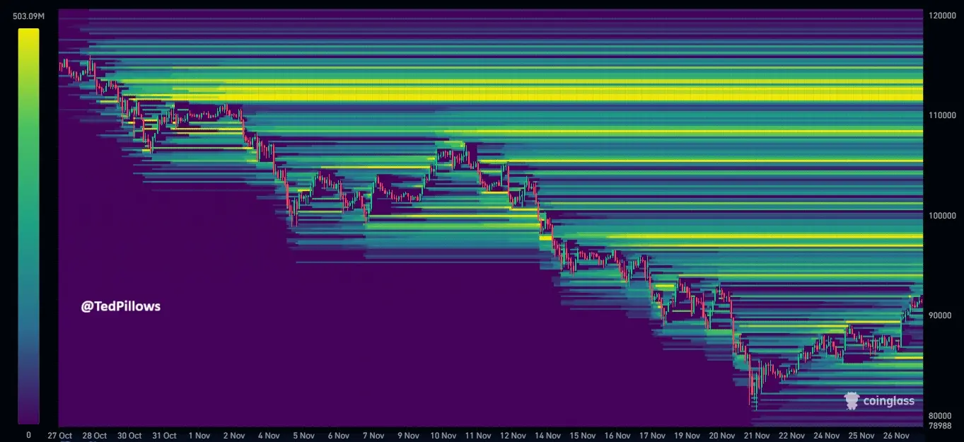 حالياً، تتركز معظم السيولة نحو الأعلى، حيث يظهر تركيز كبير بين 85,000 دولار و 86,000 دولار. وهذا يعني أنه إذا تراجعت الأسعار إلى هذه المنطقة، ستواجه دعماً قوياً من المشترين. إذا عادت الأسعار إلى نطاق 93,000 دولار إلى 94,000 دولار، فقد تقترب من 100,000 دولار. يتيح توزيع السيولة هذا تفسيراً فنياً لسبب ارتفاع بيتكوين اليوم.