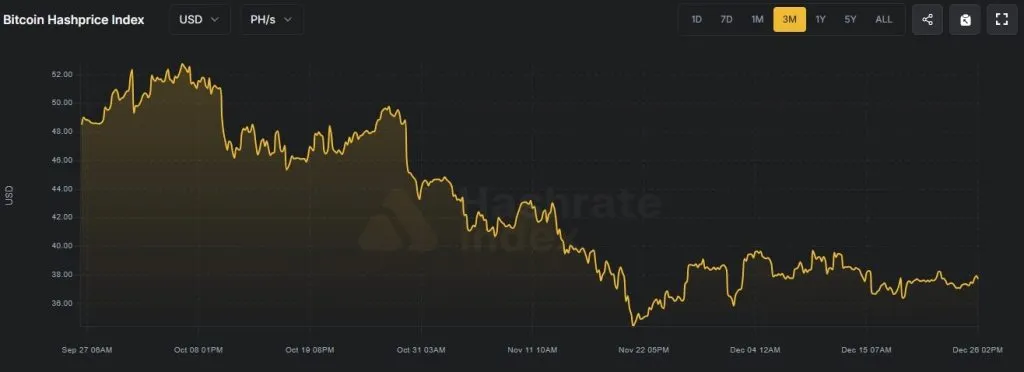 يشير استقرار المعلمات التقنية للبلوكشين إلى أن سعر الهاش سيظل قريبًا من $38 مقابل PH/s يوميًا، مما يواصل الضغط على اقتصاد التعدين.