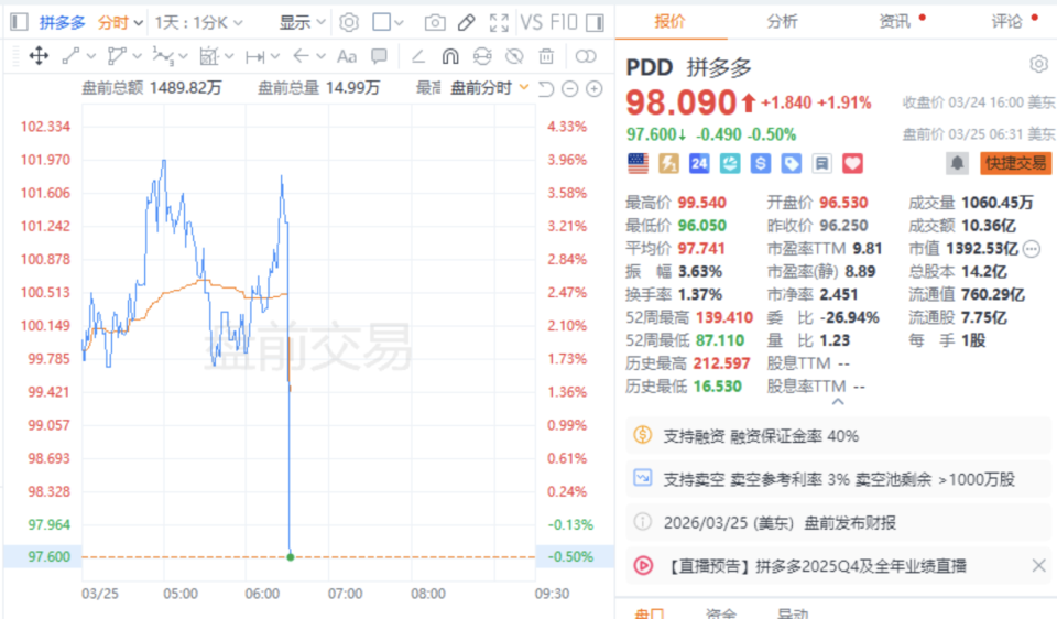 2025年全年,拼多多总营收同比增长10%至431.8B元,但归属普通股股东的净利润同比下滑12%至99.4B元。第四季度净利润同样下降11%至24.5B元,低于上年同期的27.4B元。财务副总裁刘珺表示,“这些投资是坚定的、长期的,将不可避免地影响我们的财务表现。”