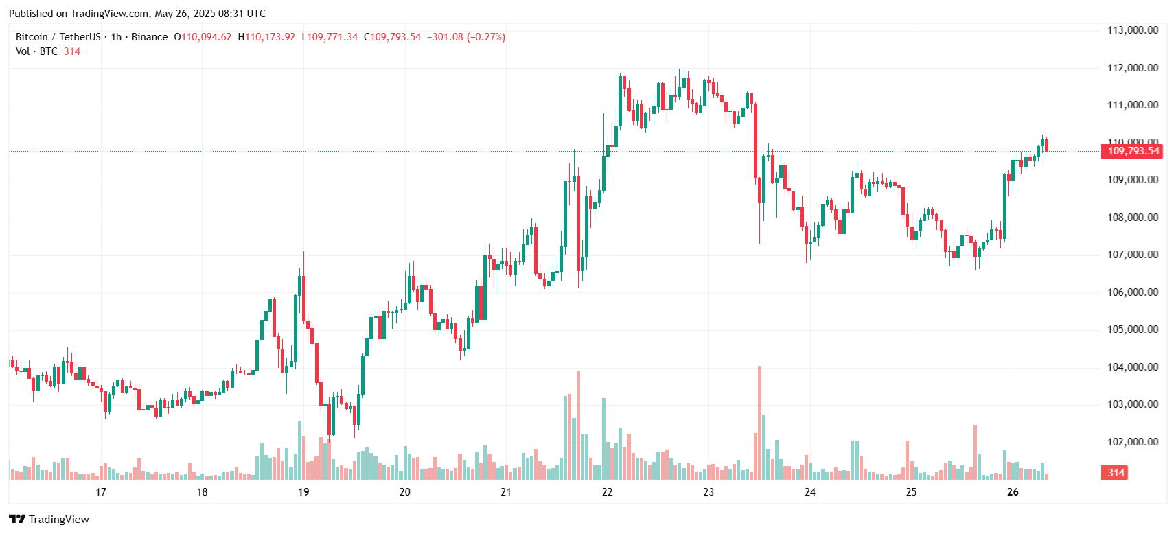 Bitcoin (BTC) ist in den letzten 24 Stunden um 2,2% gestiegen und wird derzeit über 109.000 USD gehandelt, trotz des instabilen globalen Marktumfelds. Steigende Anleiherenditen und geopolitische Spannungen haben viele institutionelle Investoren dazu veranlasst, Bitcoin als Absicherungsinstrument zu nutzen.