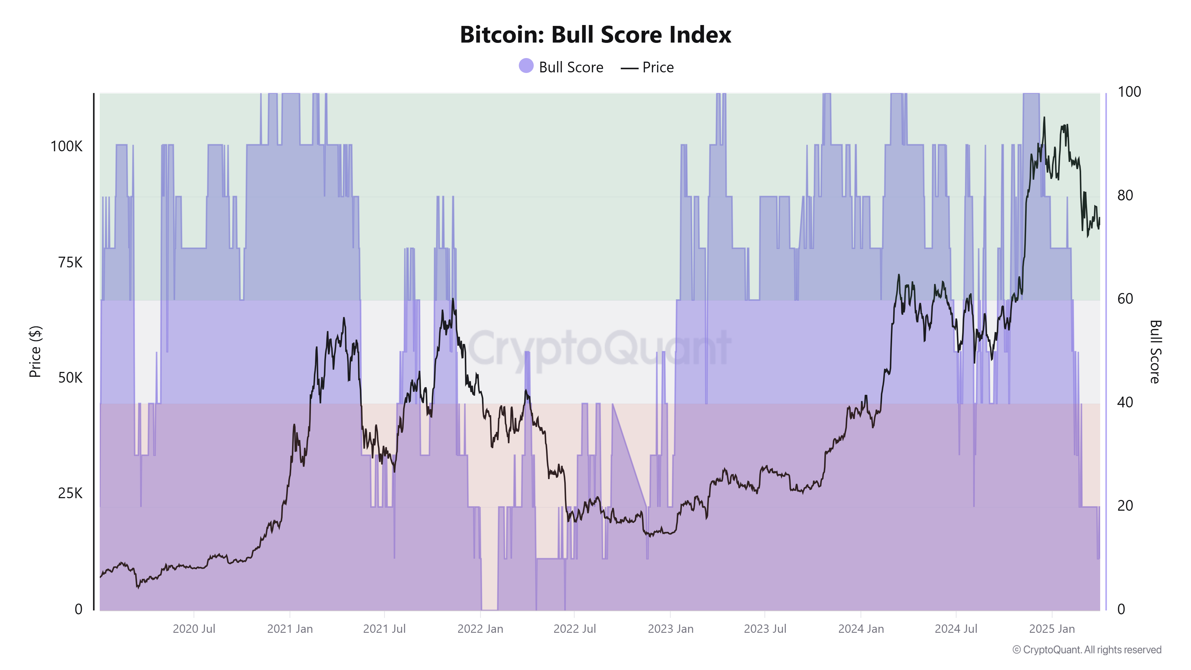 Bitcoin está entrando en una de las fases de “menor aumento de precio” desde enero de 2023. Según el “índice de puntuación de bull” de Bitcoin, el sentimiento de los inversores está en su nivel más bajo en dos años.