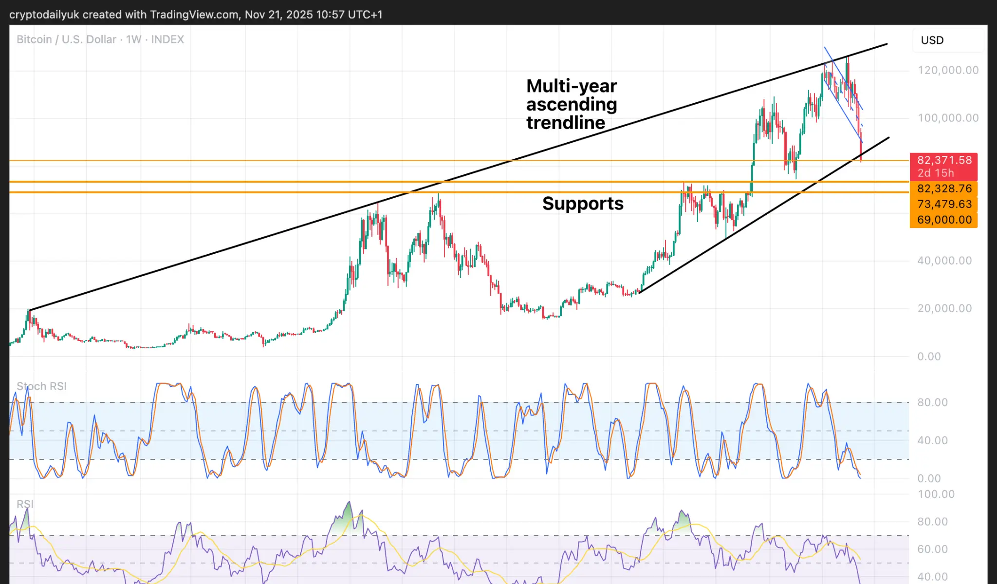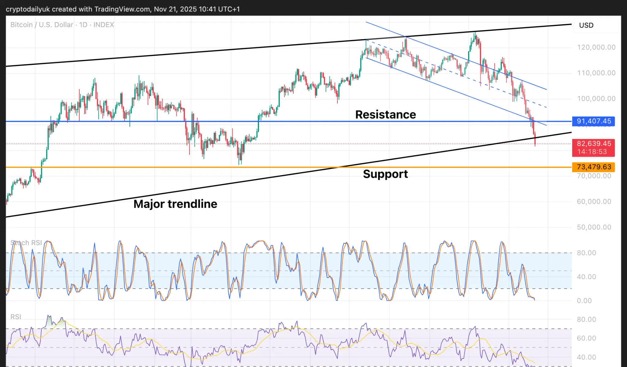 Enlace original: https://cryptodaily.co.uk/2025/11/bitcoin-btc-breakdown-accelerates-74000-next-target-in-sight