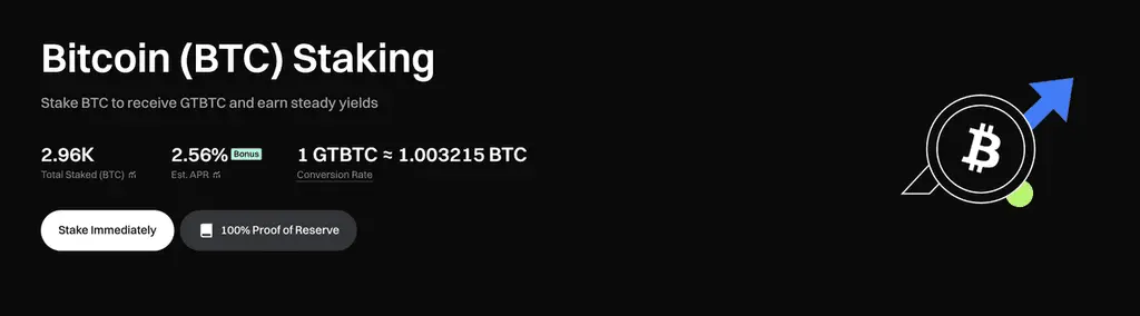 Con el staking de GTBTC, los inversores pueden obtener un rendimiento anualizado estable del 2,56%, lo cual representa un retorno relativamente sólido dentro del mercado de criptomonedas. Es especialmente adecuado para usuarios que buscan evitar fluctuaciones drásticas del mercado.