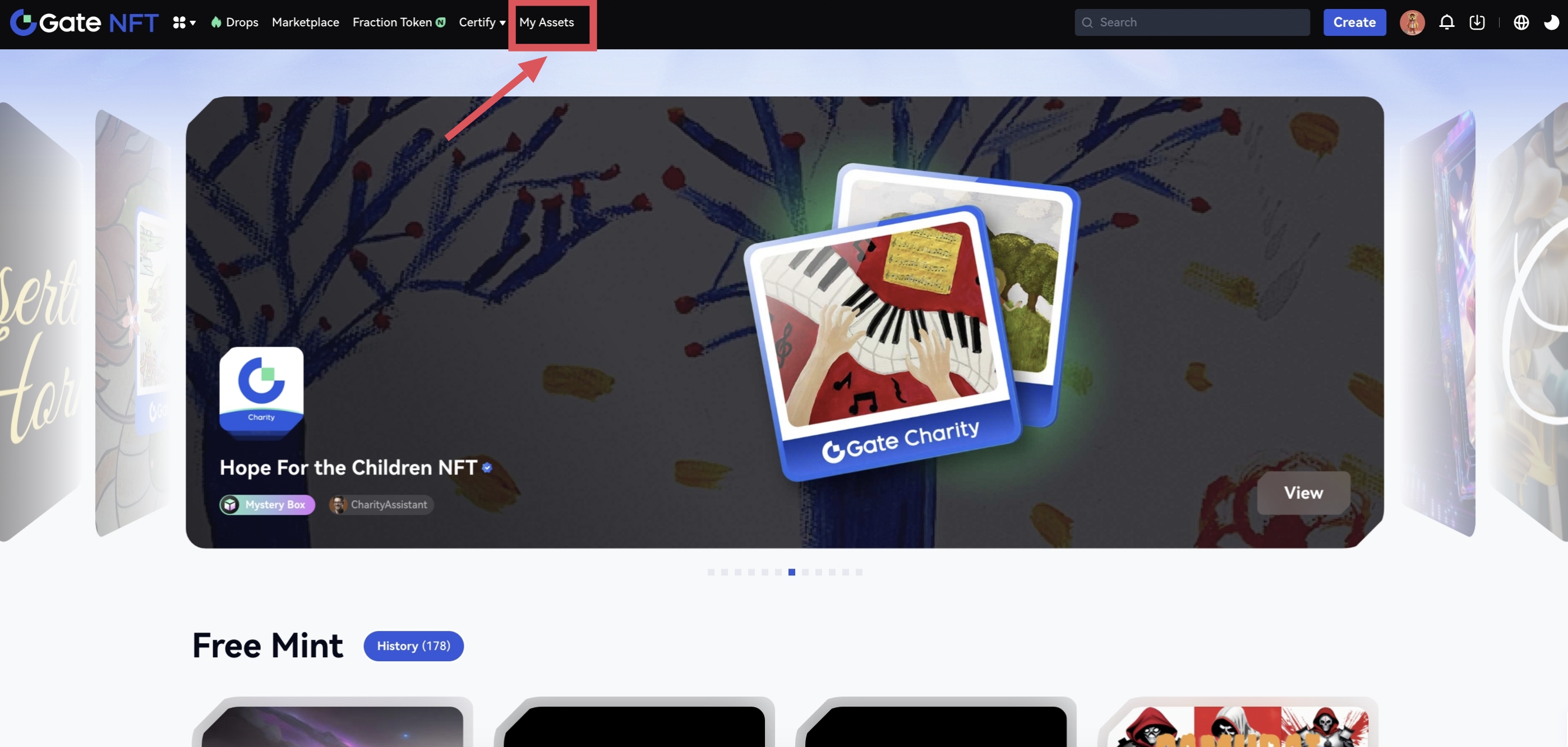 Étape 1:Cliquez sur "Mes biens" sur la page d'accueil de Gate NFT.