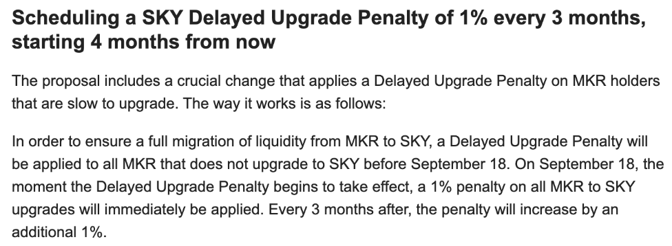 同じアップデートでは、MKRからSKYへの強制移行が行われることも言及されています。