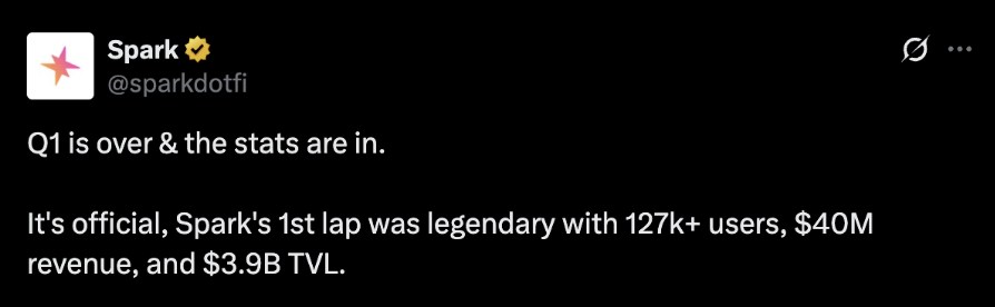 Sparkは、ほぼインセンティブなしで2023年第1四半期に4000万ドルの収益を達成した、貸し借り市場とオンチェーン資産管理を組み合わせたプロジェクトです。彼らは、補助金利でSKYを借り入れ、オンチェーンで資本を配分することができました。