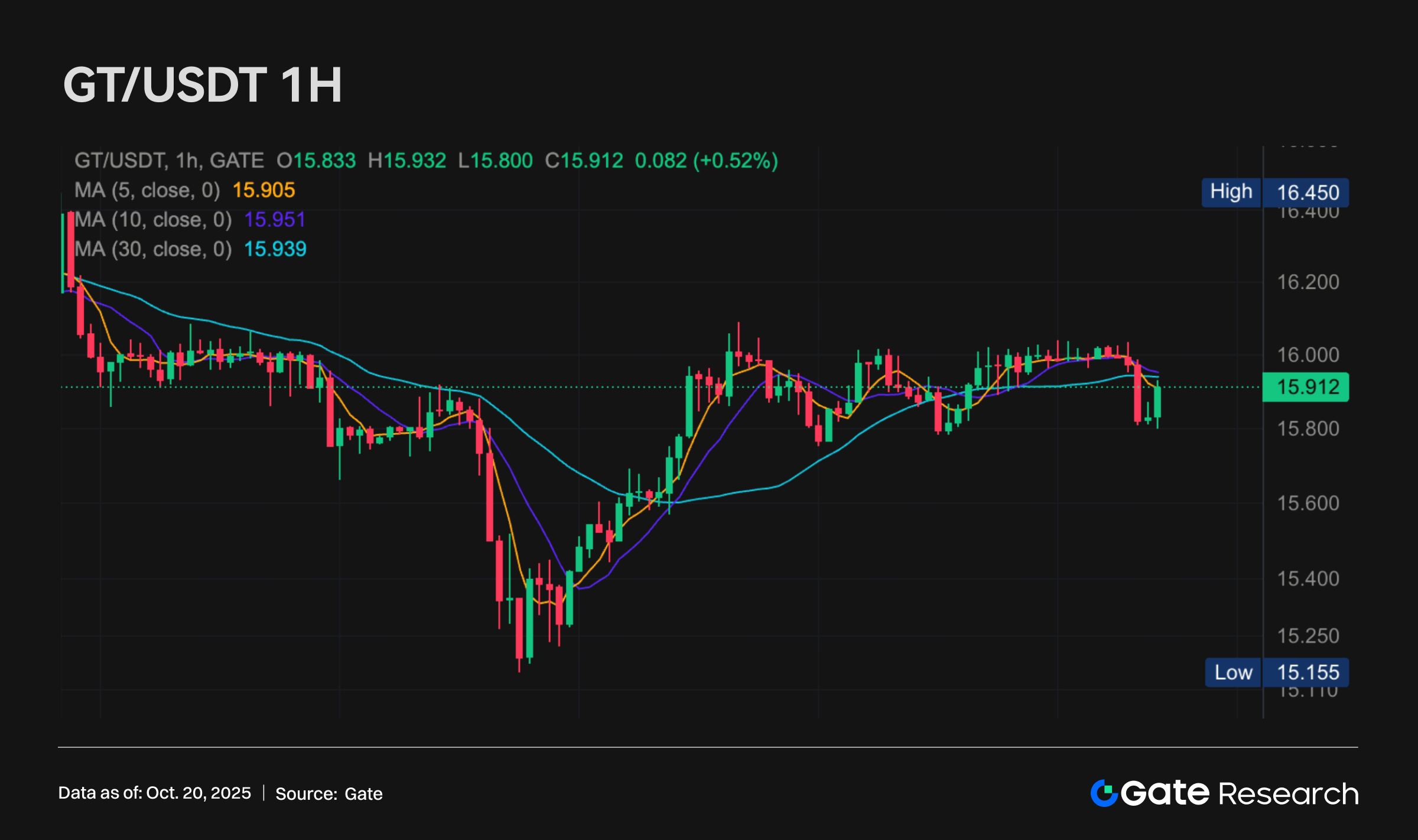 GT( 0.31% 丨 現在価格 15.91 USDT)