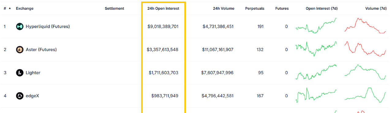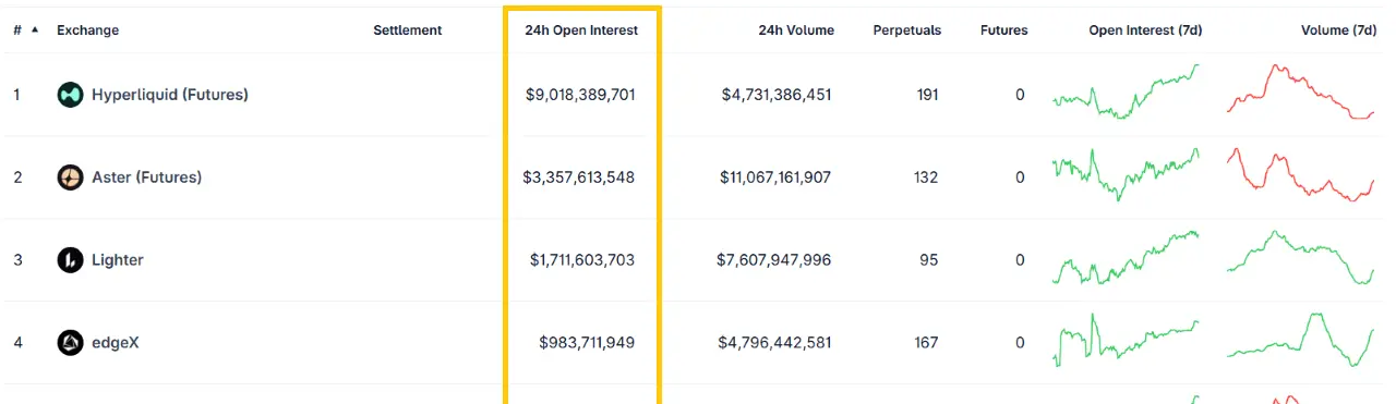 $1 兆のパーペチュアルDEXレースに新たな挑戦者が登場-------------------------------------------------------------先月、永続的なDEXの取引量は$1 兆に達し、今年初めにブロックチェーンプラットフォームでデビューしたYZi LabsのAsterなどの新しいプレーヤーの登場に後押しされました。そして、水曜日には、数ヶ月のベータテストを経て静かにローンチされたSui上で開発された新しいパーペチュアルDEX、Astrosが発表されました。永続先物取引、または「パープス」は、契約の期限がないクリプト資産に対する先物契約やレバレッジをかけた賭けのことです。クリプトデリバティブ企業が2016年にパープスを先駆けました。それ以来、この金融商品は人気が急増し、一部の報告によると、現在ではクリプトデリバティブ市場全体の26%を占めています。 (オープンインタレストでランク付けされたトップ5のパーペチュアルDEX。 / Coingecko)先物取引の需要の急増は、ますます利益を上げるセクターを生み出し、複数のプロジェクトがエコシステム内で市場シェアを争っています。2023年に立ち上げられたプラットフォームは、先物取引DEXコミュニティで最も有名な名前かもしれません。他にはLighterや前述のAsterがあります。今週のAstrosの登場は、既存プラットフォームの支配に対する新たな脅威をもたらします。"私たちはただのパープDEXを構築しているわけではありません"と、アストロスのスポークスパーソンはリリースで述べました。"私たちは、SuiのDeFiの次の10年間での位置を定義する流動性のバックボーンを確立しています。"