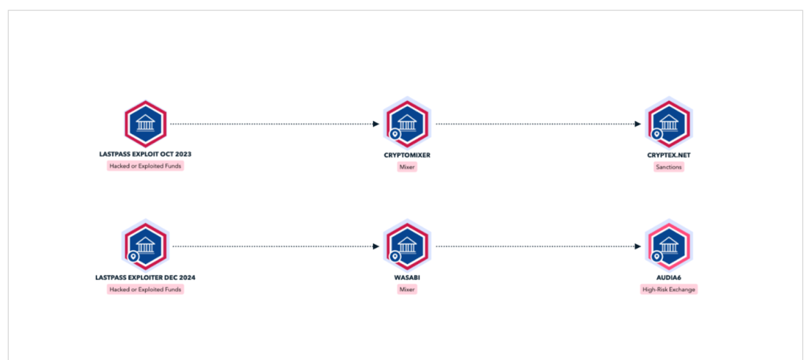 その後のフェーズは、2025年9月にTRMのアナリストがWasabi Walletを通じて約$7 百万ドルの盗難資金を追跡したもので、引き出しはAudi6という別のロシアの取引所に流れました。この取引所は、LastPassに関連した資金を2025年10月まで受け取っていました。