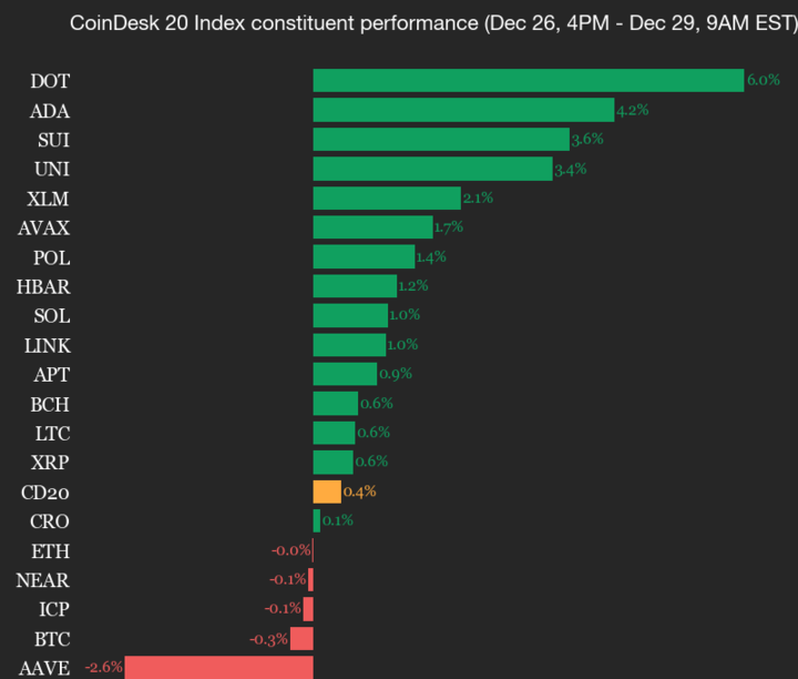 CoinDesk 20 パフォーマンスアップデート:Polkadot (DOT)、週末に6%上昇