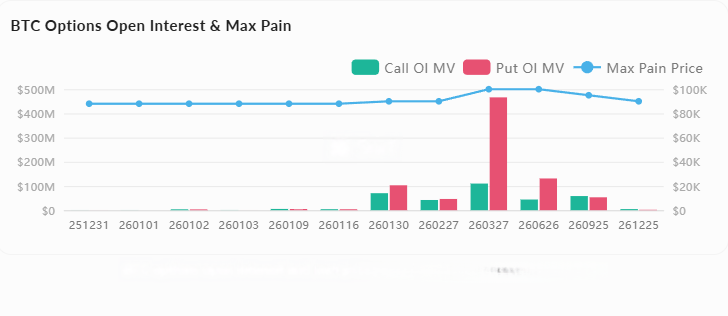 オプション市場総未決済満価は277.4億ドル(24時間+3.55%)で、デリビットは84.54%を占めています。12月および1月満期契約の最大の課題は88,000ドルに集中しており、スポット価格に磁石効果を持っています