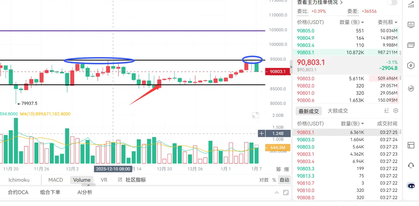 Recap: Bitcoin has been consolidating sideways for nearly two weeks, and in the Year of the Horse 2026, it has also delivered a good start rally. Bitcoin rose from 87,800 to a high of 94,700, gaining 7,500 points in a week, an 8.6% increase. The market also saw the “Mrs. Ethereum” rise from 2,930 to around the target level of 3,310 we mentioned before the holiday. Currently, although the first week of 2026 has shown impressive performance, the overall consolidation pattern indicates that the market still lacks sustained liquidity supply. The supply and demand are still relatively imbalanced. Plus, the US Senate is scheduled to review the Crypto Market Structure Act on January 15. This could trigger a real breakout. This legislation will determine Bitcoin’s status; it will no longer be seen as an alternative asset by most, but as a core component of the global financial system. Passing this legislation could make Bitcoin a truly sovereign-level asset, stepping onto the global stage as a mainstream asset. In the second week of 2026, our main focus will be on monitoring data releases while keeping a close eye on political changes in the US. Don’t just blindly chase the few K-line patterns on the chart for quick gains and losses.