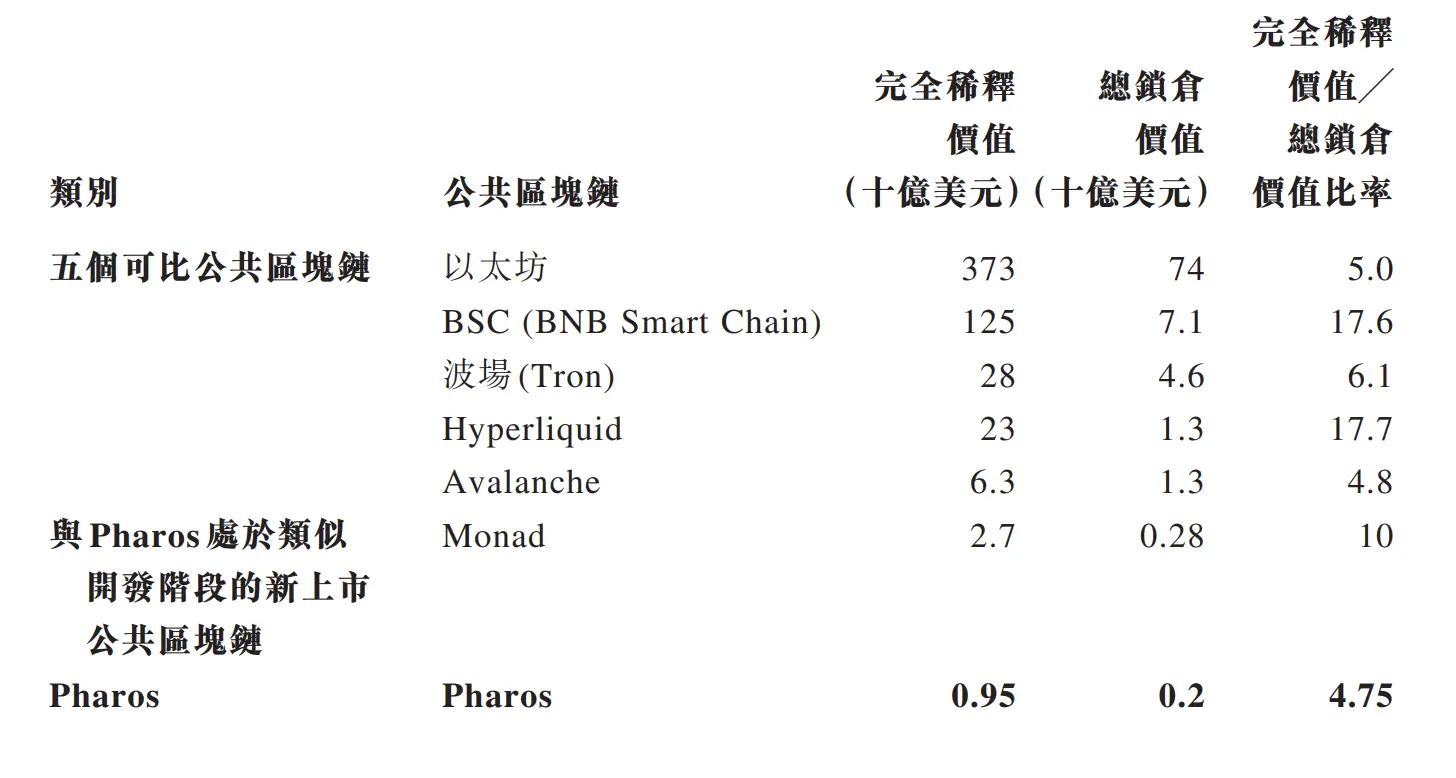 Another interesting detail is that GCL New Energy also explained why it valued Pharos at $950 million in the agreement. According to the deal, this valuation is mainly based on the on-chain total locked assets (TVL). In the Layer 1 sector, the average ratio of fully diluted market cap to total locked assets for Ethereum, BSC, Hyperliquid, Tron, and Avalanche is 10x, with a median of 6x. Similar projects like Monad have a ratio of 10x.