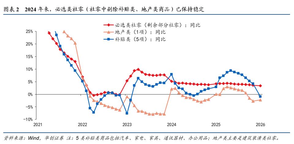 ØRegarding “stagnation,” the room for further economic slowdown is very limited. We see that, excluding five subsidy-related commodities and one real estate chain commodity, the remaining retail sales (mainly essential consumption) have stabilized since late 2024. This indicates that, after multiple shocks such as the pandemic and real estate adjustments, core economic variables have formed a stable base, making a sharp downturn unlikely.