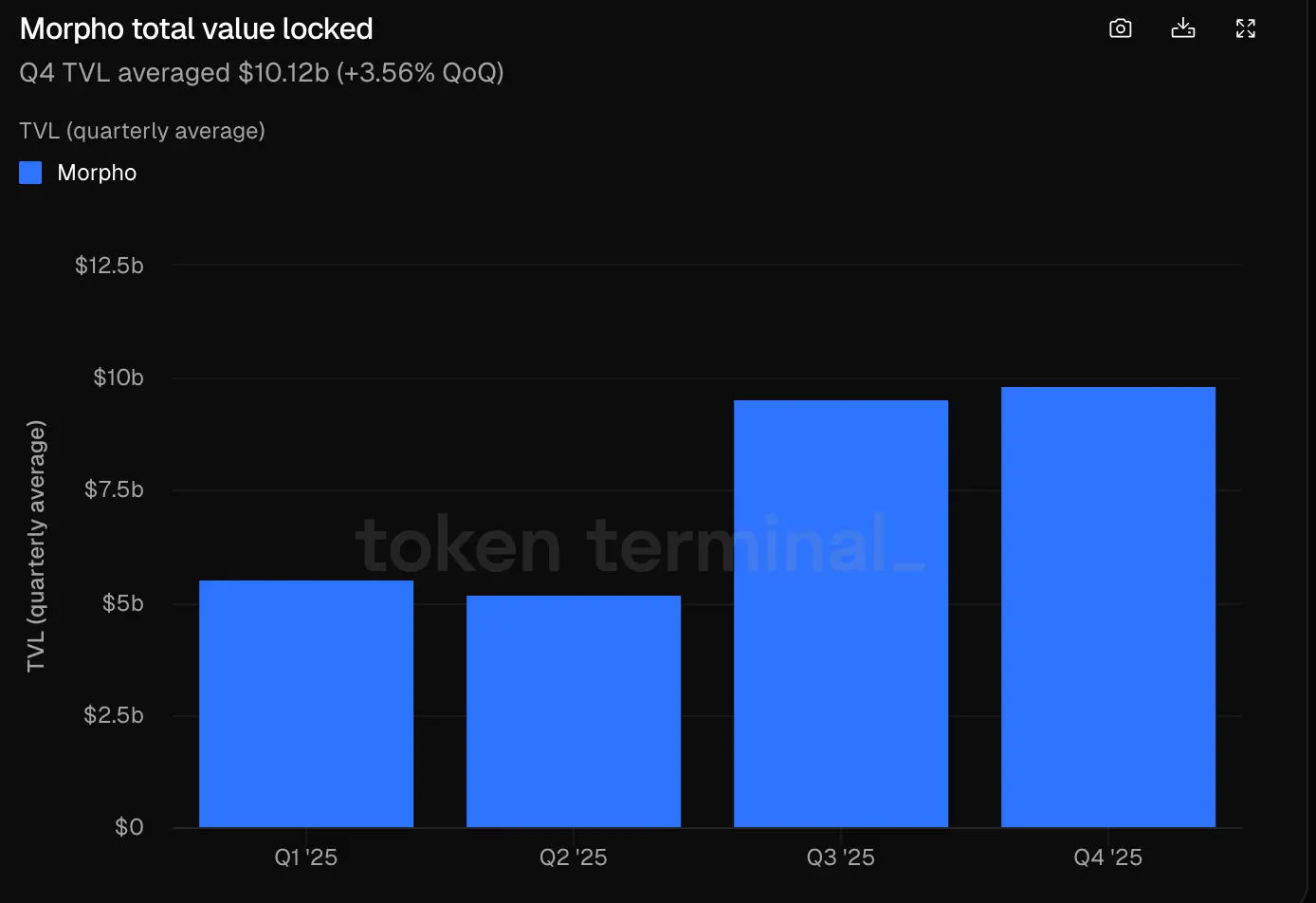 Let’s look at Morpho’s fundamentals and whether it has the potential to challenge Aave’s lending throne. According to Tokenterminal data, in 2025 Q3 and Q4, Morpho’s protocol TVL has stayed above 9.5 billion USD, up about 80% from the first half;