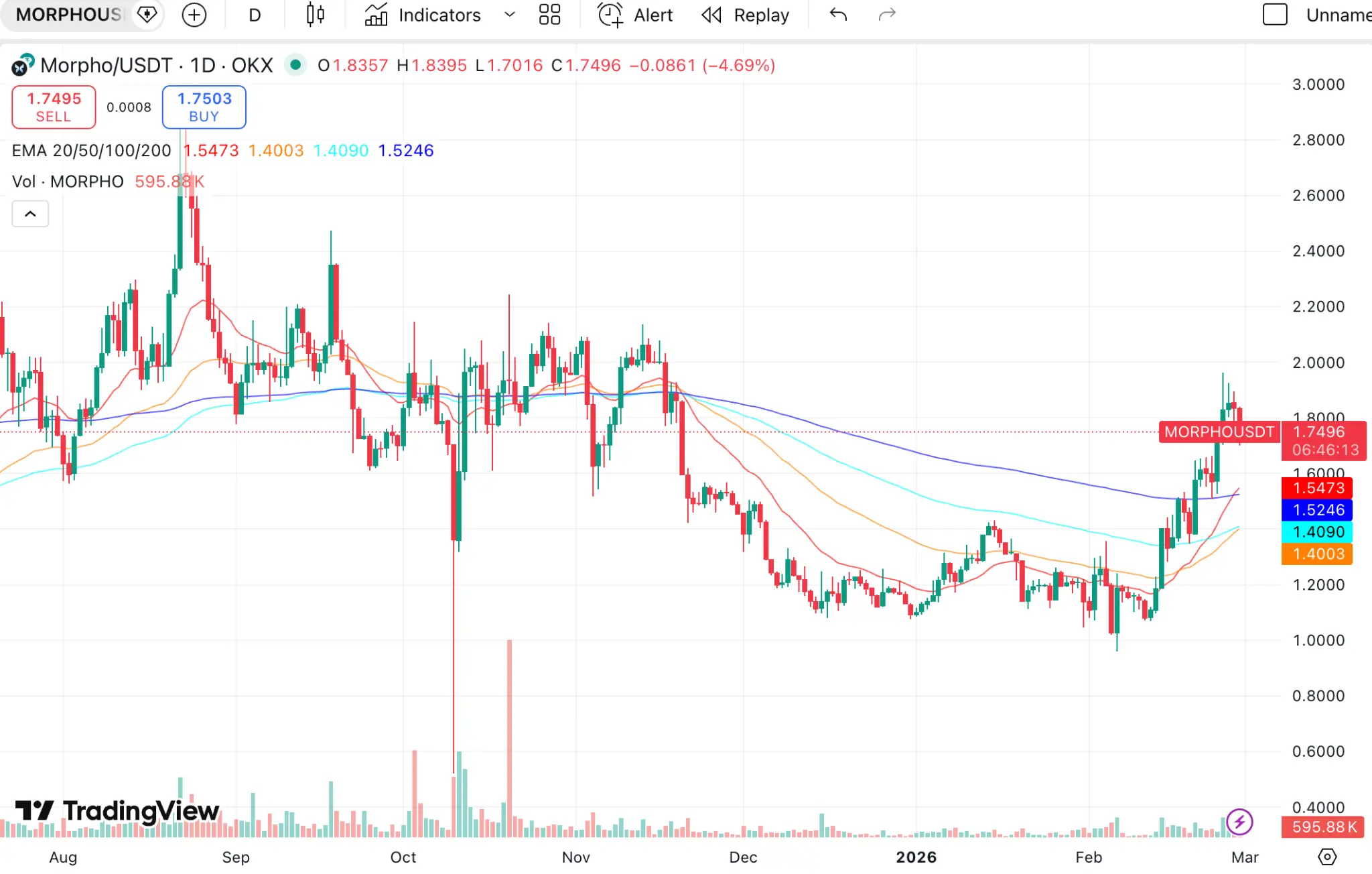 However, even amid this overall slump, the MORPHO token has rebounded from the early-February low of 0.96 USD to the 1.8–1.9 USD range, going up by double against the trend. Judging from the daily chart, this rebound has basically already formed a rounded-bottom pattern, which might be a bottom-reversal signal. Is this rally driven only by a temporary burst of market sentiment, or is it a trend kick-off resulting from the resonance between fundamentals and structural variables?