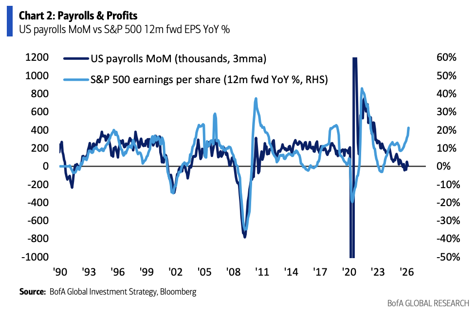 The market’s core contradiction right now centers on the interaction between employment and corporate earnings.