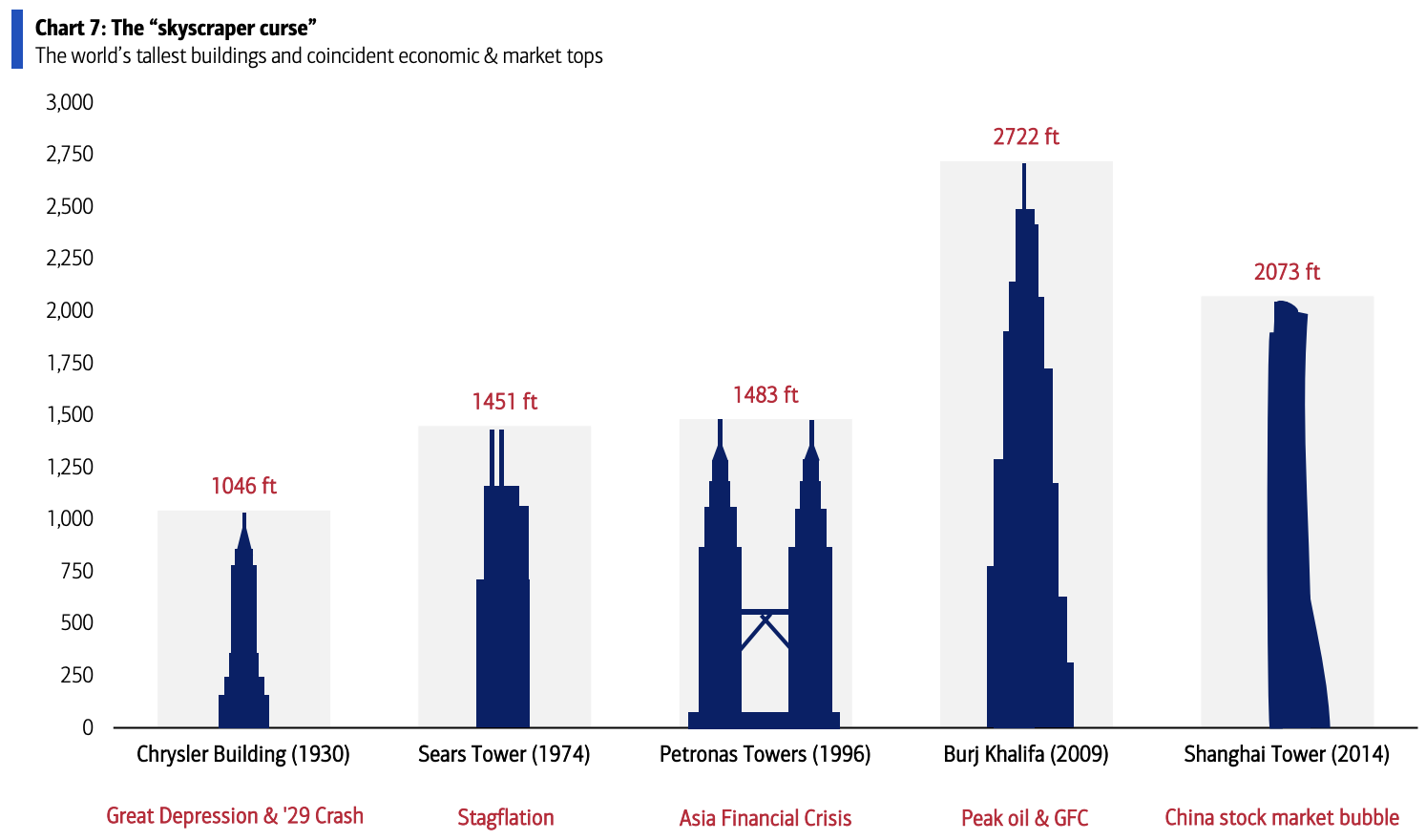 Bank of America’s global breadth rules show that currently, 16% net of the constituent stocks in the MSCI global index are simultaneously trading below both the 50-day and 200-day moving averages, still far from the -88% threshold required to trigger a buy signal.