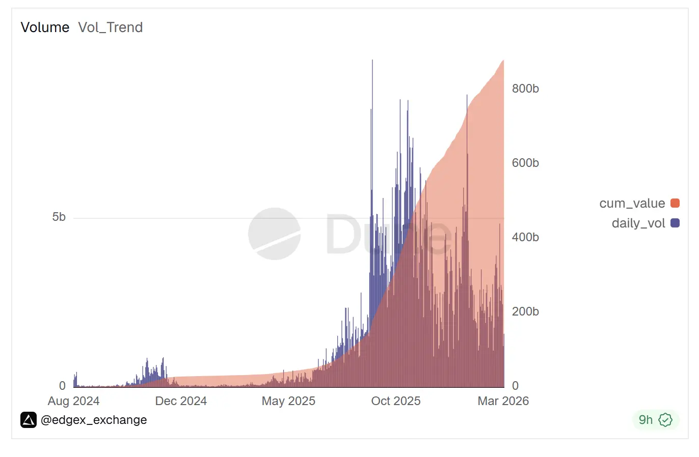 Since August 2025, edgeX’s trading volume has entered a rapid growth track. To date, the number of user wallet addresses has exceeded 470k, total trading volume has surpassed $87.7 billion, and its current total TVL is over $360 million. In addition, edgeX has earned more than $180 million in fee revenue from these trades.