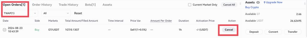 Visite o site da Gate, entre no spot ou na negociação de margem, clique em “ordem estratégica” e clique em “TWAP”.