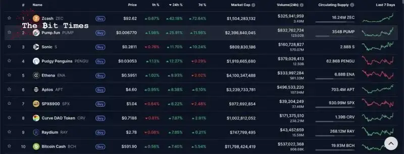 NOTÍCIA RECENTE: $ZEC está classificado em #65 @ $1.52B de capitalização de mercado