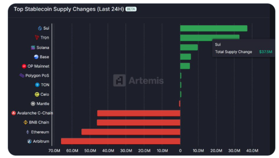 Nas últimas 24 horas, Sui liderou a tabela de classificação em termos de capital de stablecoin que flui, superando até mesmo blockchains renomadas como Solana e Tron. Especificamente, no dia 4 de abril, a rede registrou um fluxo de capital de stablecoin no valor de aproximadamente 37,5 milhões de USD – demonstrando o apelo cada vez maior do ecossistema Sui para os investidores.