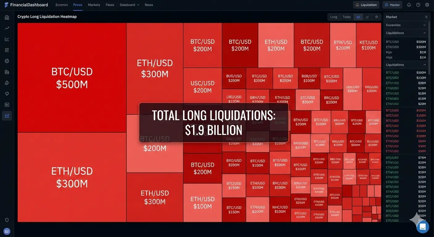 Mais de 1,9 bilhões de dólares em posições longas foram eliminados, desencadeando uma cascata de vendas forçadas.