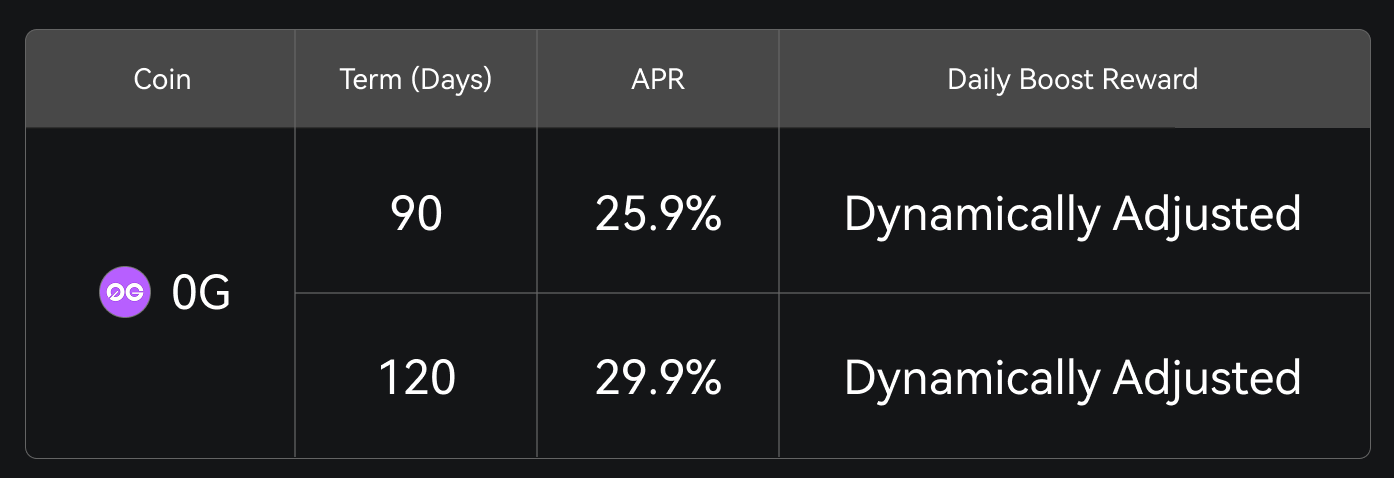 Gate Simple Earn запускает лимитированную акцию с Boost-наградой 0G и текущей доходностью до 278% годовых. Пользователи, оформившие подписку на продукты 0G с фиксированным сроком в период проведения акции, получат дополнительно в общей сложности 850 000 0G в виде Boost-наград сверх стандартной годовой доходности.