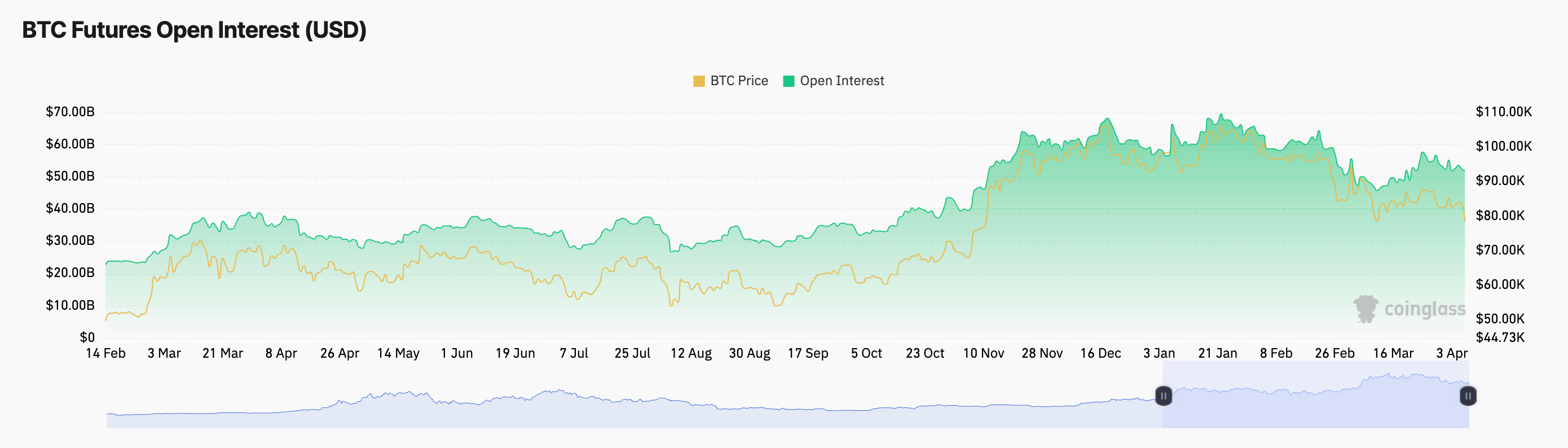 ! График Bitcoin OI | Источник: CoinglassOI Фьючерсы на биткоин измеряют общее количество открытых фьючерсных контрактов, которые еще не были ликвидированы или закрыты. Когда индекс падает, как сейчас, это обычно указывает на то, что трейдер закрывает позицию – будь то тейк-профит или стоп-лосс – вместо того, чтобы открывать новую.