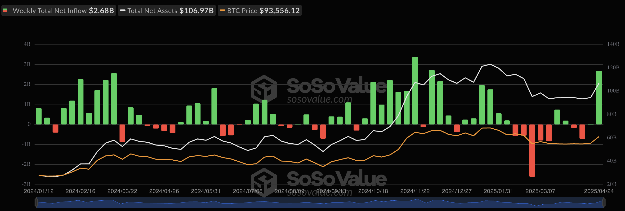 Пока альткоины привлекают внимание двухзначными ралли, институциональные инвесторы начали проявлять интерес к Биткойну, а фондовые биржи с наличными ETF в США зафиксировали сильнейшую неделю притока средств в 2025 году.