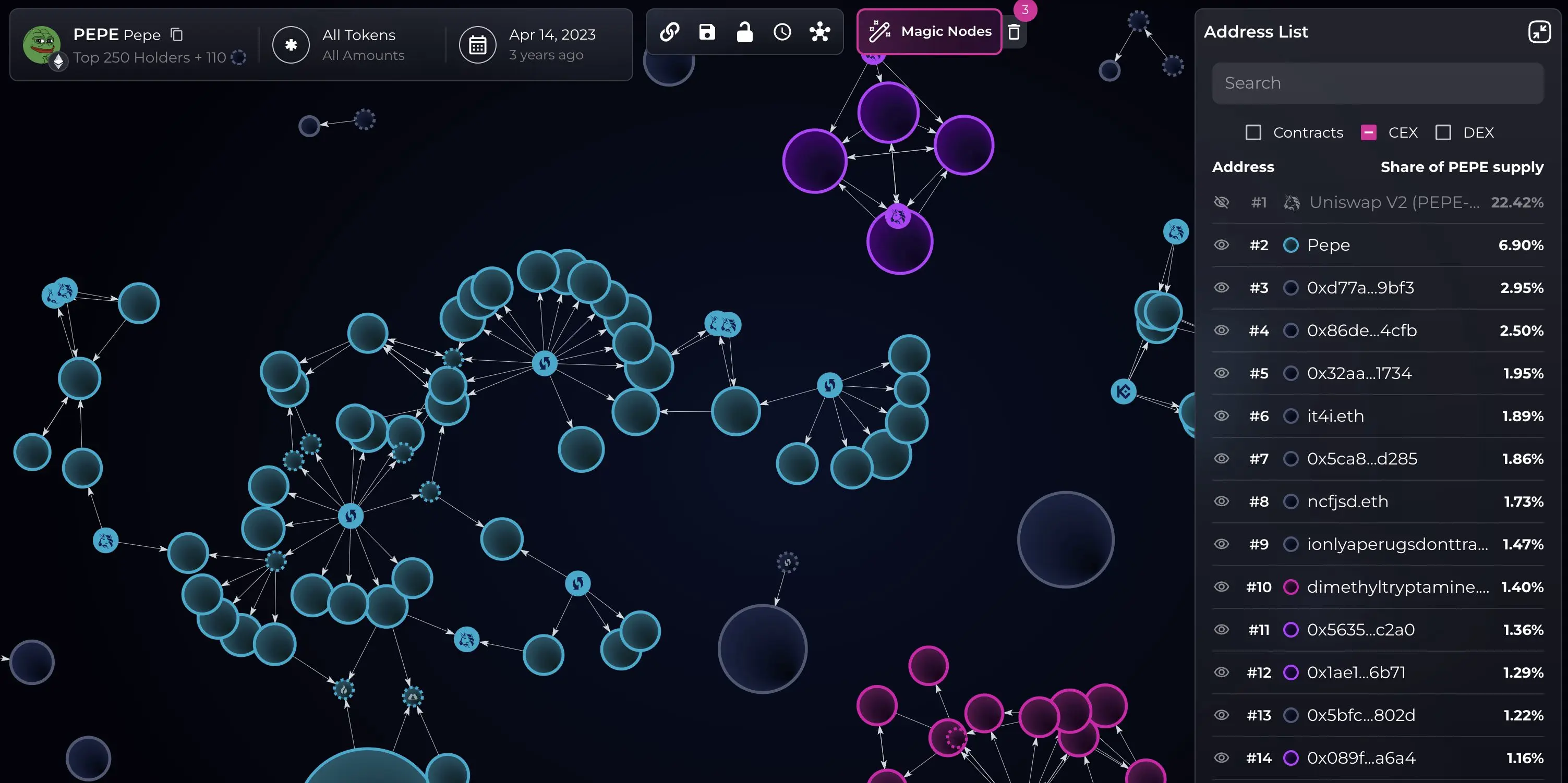 Такая концентрация исходного предложения контрастирует с первоначальным брендингом Pepe как “монеты для народа”. Веб-сайт проекта заявил, что токен был запущен “в скрытности” без предварительных продажных распределений.