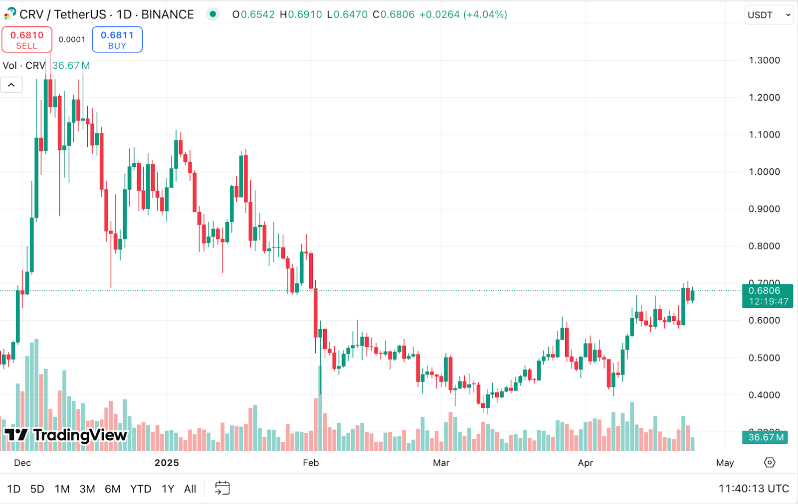 ! ราคาสด Chart 1- CRV/USDT เผยแพร่บน TradingView เมื่อวันที่ 24 เมษายน 2025