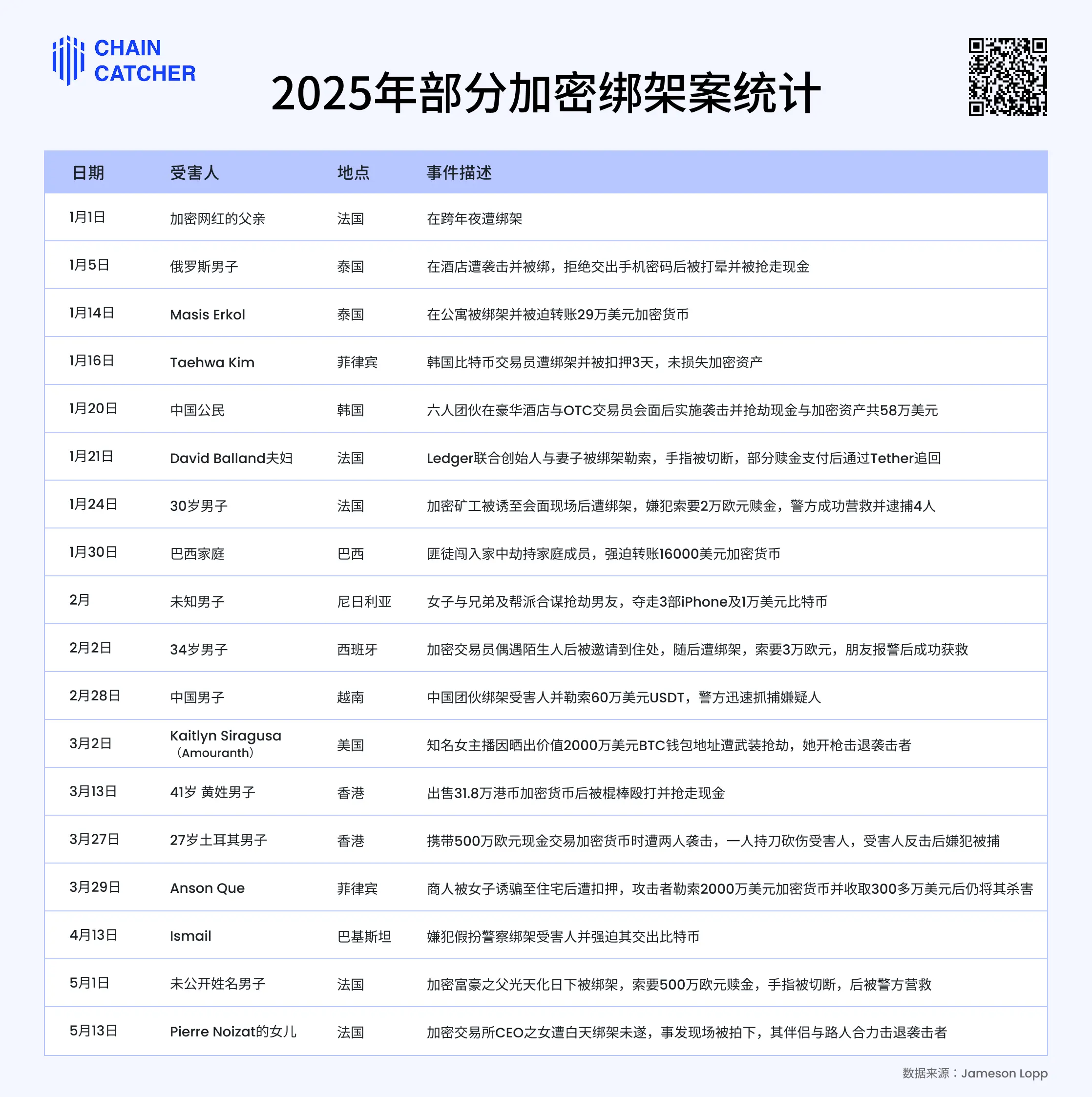 ตามสถิติจากเครื่องมือการติดตามสาธารณะที่สร้างและดูแลโดย Jameson Lopp หัวหน้าฝ่ายเทคโนโลยีของบริษัทความปลอดภัย Casa จนถึงปัจจุบัน ในช่วงห้าเดือนแรกของปี 2025 ได้มีการบันทึกเหตุการณ์การโจมตีทางกายภาพต่อผู้ที่ทำงานในสกุลเงินดิจิทัลหรือญาติของพวกเขาอย่างน้อย 22 ครั้ง ตัวเลขนี้ใกล้เคียงกับจำนวนในปี 2023 (24 ครั้ง) และใกล้เคียงกับจำนวนรวมในปี 2024 (32 ครั้ง) สิ่งที่น่ากังวลคือ นี่เป็นเพียงส่วนหนึ่งที่เปิดเผยสาธารณะ ตัวเลขที่แท้จริงอาจสูงกว่านี้มาก.
