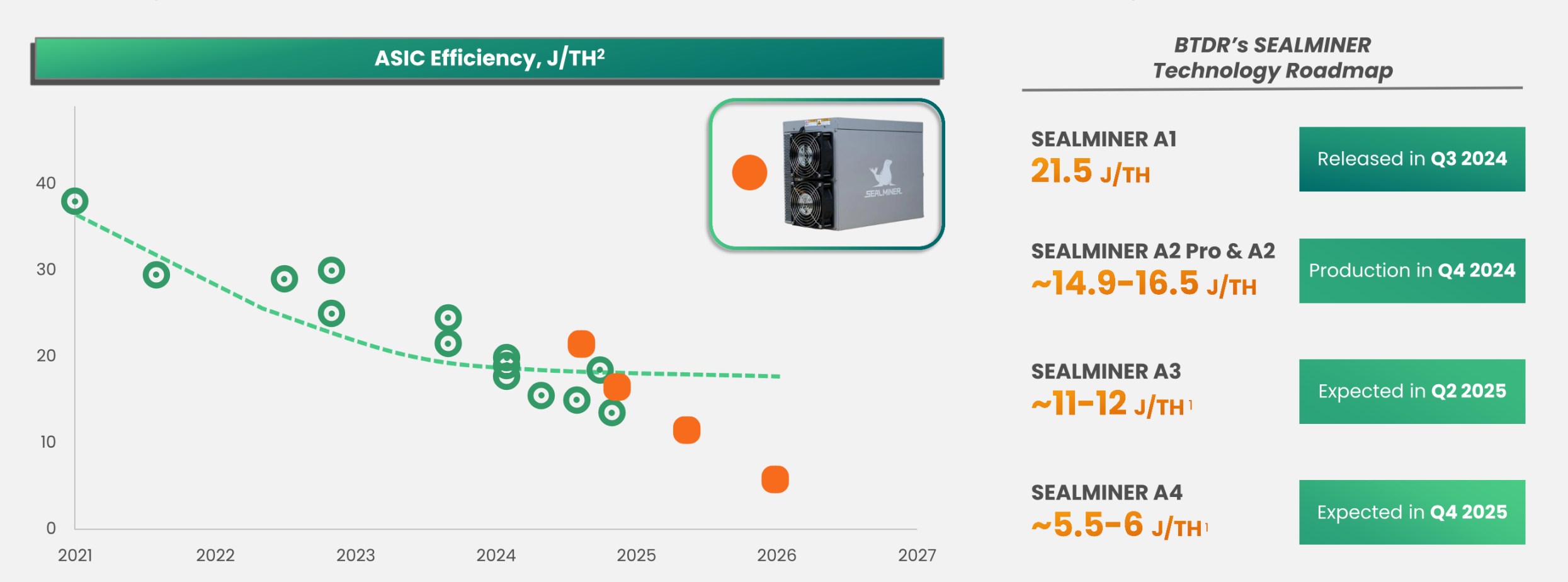 4 ลาเซนถึง 4 เมษายนการขุดเหมืองของบริษัทได้มีแฮชที่ 12.5Eh/s คาดว่าจะเพิ่มขึ้นถึง 40Eh/s ในเดือนตุลาคมและคาดว่าจนถึงสิ้นปี 25 จะเกิน 40Eh/s เครื่องขุด Seal01 และ Seal02 ใหม่ล่าสุดของบริษัทเพิ่งเปิดตัวในเดือนมีนาคม แต่ต้นทุนการขุดโดยรวมยังต่ำกว่าคู่แข่ง (รวมถึง Mara, CLSK ฯลฯ) อย่างน้อย 20% และเมื่อมีการแทนที่เครื่องขุดเก่าแล้ว ข้อได้เปรียบด้านต้นทุนจะยิ่งชัดเจนมากขึ้น โดยผลผลิตต่อเดือนจะเริ่มแสดงแนวโน้มการเติบโตอย่างก้าวกระโดดตั้งแต่ไตรมาสที่ 2.