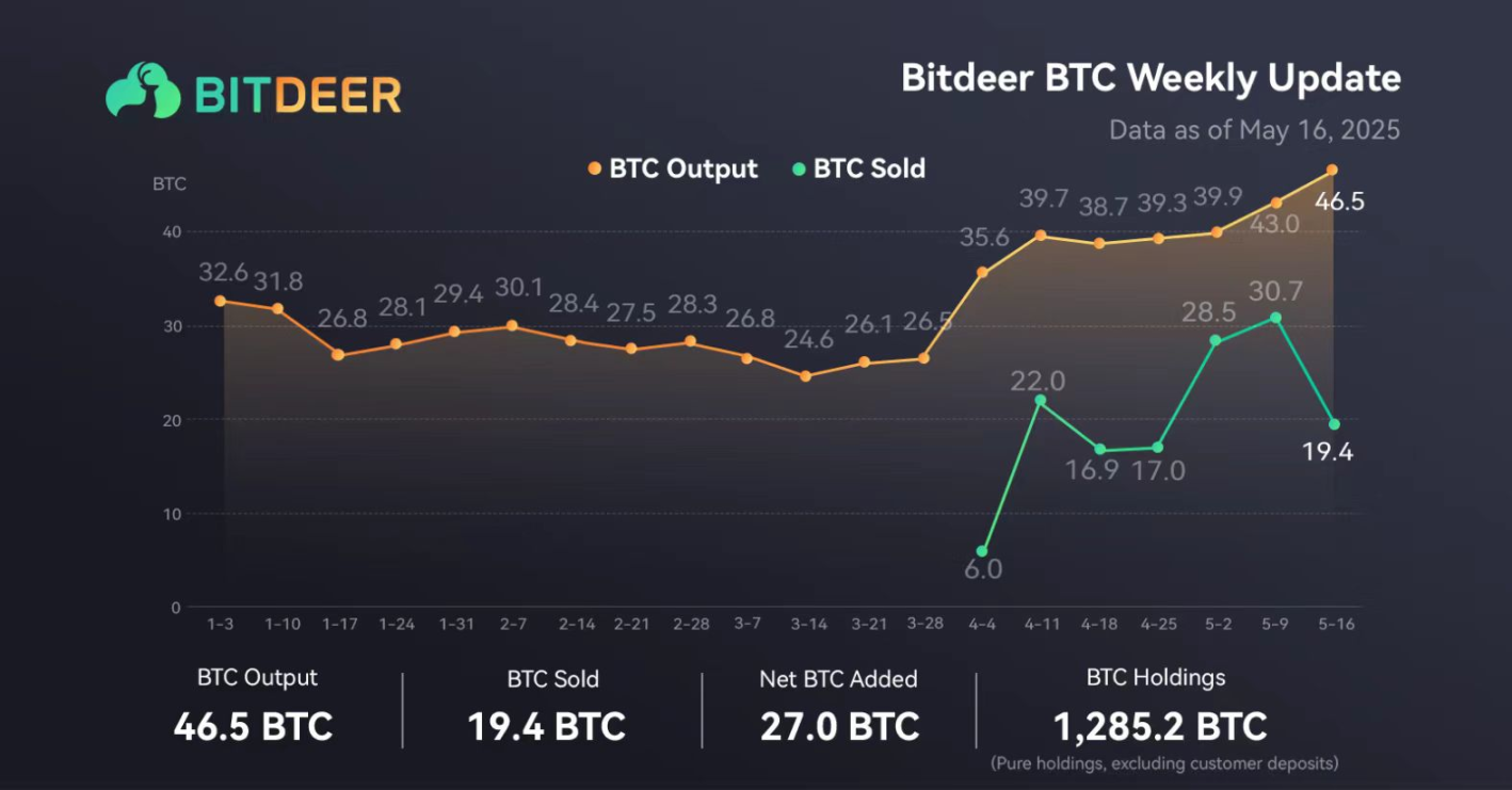เหตุการณ์: Bit Deer (Btdr.US) releases Q1 FY2025 report. รายได้จากการดําเนินงานของ บริษัท ในไตรมาสแรกอยู่ที่ 70.1 ล้านดอลลาร์ลดลง 41.3% เมื่อเทียบเป็นรายปีและเพิ่มขึ้น 1.6% เมื่อเทียบเป็นรายไตรมาส รายได้ของธุรกิจที่ดําเนินการด้วยตนเองอยู่ที่ 37.2 ล้านเหรียญสหรัฐ ลดลง 10.4% เมื่อเทียบเป็นรายปี กําไรขั้นต้นรวมติดลบ 3.2 ล้านเหรียญสหรัฐและอัตรากําไรขั้นต้นอยู่ที่ -4.6% สาเหตุหลักมาจากการเพิ่มขึ้นของราคาไฟฟ้าเนื่องจากฤดูแล้งในภูฏานและการปิดเหมืองภูฏานชั่วคราวโดย Xiaolu แต่ราคาไฟฟ้ากลับสู่ระดับ 0.042 เหรียญสหรัฐต่อกิโลวัตต์ชั่วโมงหลังจากฤดูฝนเข้าสู่ไตรมาสที่สอง ยอดขายเครื่องขุดซีลมูลค่า 4.1 ล้านดอลลาร์ถือเป็นการเริ่มต้นอย่างเป็นทางการของการขายเครื่องขุดของบริษัท Adjusted EBITDA ติดลบ 56.1 ล้านดอลลาร์เทียบกับบวก 27.3 ล้านดอลลาร์ในช่วงเวลาเดียวกันในปี 2024 รายได้สุทธิอยู่ที่ 410 ล้านดอลลาร์โดยมีสาเหตุหลักมาจากการกลับรายการมูลค่ายุติธรรมของธนบัตรแปลงสภาพที่เกิดขึ้นในไตรมาสที่สี่ของปี 2024 (448.7 ล้านดอลลาร์) และตัวเลือก TEDA (58.4 ล้านดอลลาร์)