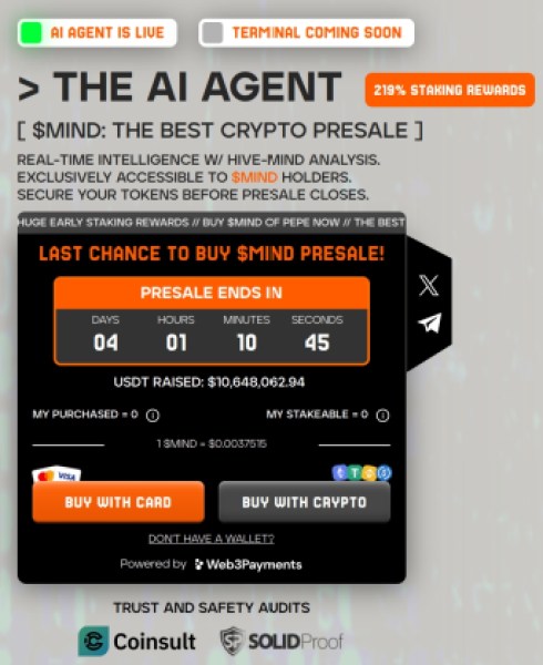 ! เนื้อหาบรรณาธิการที่เชื่อถือได้ ซึ่งได้รับการตรวจสอบโดยผู้เชี่ยวชาญในอุตสาหกรรมชั้นนำและบรรณาธิการที่มีประสบการณ์ การเปิดเผยโฆษณา หากคุณยังลังเลเกี่ยวกับการเข้าร่วมการขายล่วงหน้าของ MIND of Pepe ตอนนี้เป็นโอกาสสุดท้ายของคุณในการจับโทเคนในราคาลดพิเศษ เพราะการระดมทุนสำหรับโครงการเอไอเอเจนต์จะปิดในอีกสี่วัน