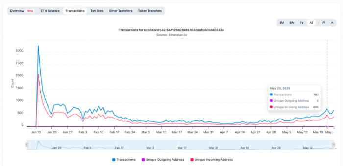 จากข้อมูล Etherscan พบว่าการทำธุรกรรม $MIND เพิ่มขึ้นอย่างมากในสัปดาห์ที่ผ่านมา ในวันที่ 23 พฤษภาคมเพียงวันเดียว มีการบันทึก 703 การทำธุรกรรมจาก 446 ที่อยู่ที่ไม่ซ้ำกัน น่าสังเกตคือการซื้อ $MIND ของวาฬสี่รายในวันที่ 21 พฤษภาคม ซึ่งมีมูลค่ารวม $55,509.29