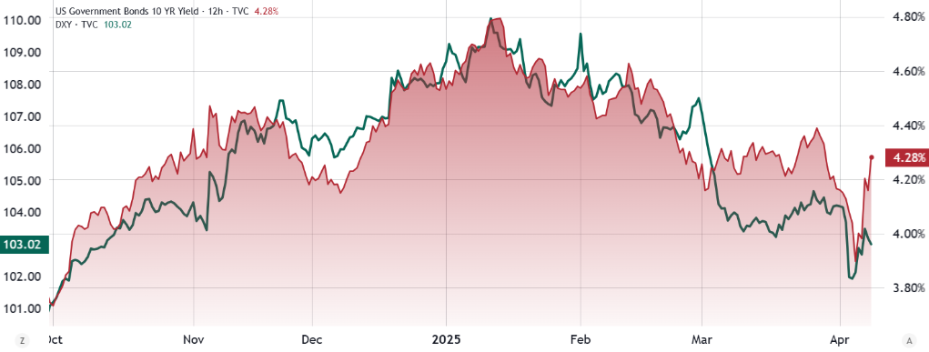On April 8, the yield on the 10-year U.S. Treasury bond rose to 4.28%, after dropping to 3.90% on April 7. The increase indicates that investors are demanding higher returns to hold these assets.