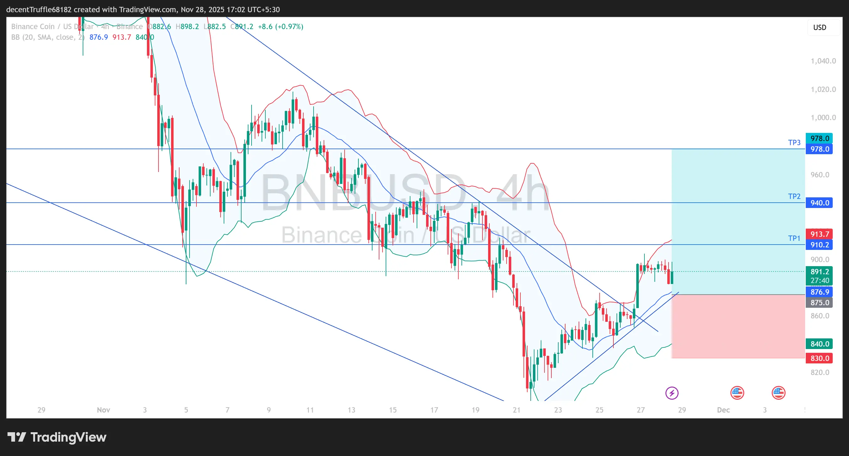 Long BNB: alçalan kama formasyonundan direnç kırılması güçlü bullish tersine dönüşü ana direnç seviyelerine işaret ediyor