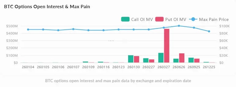 Options Max Pain: Concentrated around $90,000 (expiring Jan 4-5), total open interest $29.1B