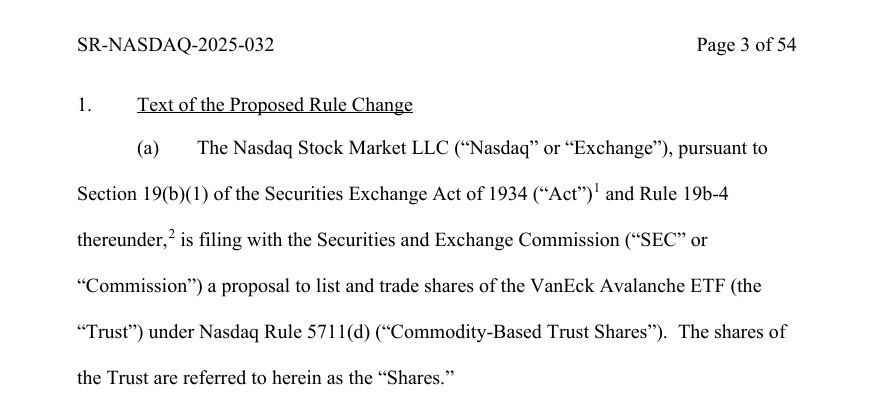 ! Avalanche avaxВитяг із заявки на лістинг Nasdaq Avalanche ETF | Джерело: Nasdaq## VanEck вступає в гонку Avalanche ETF