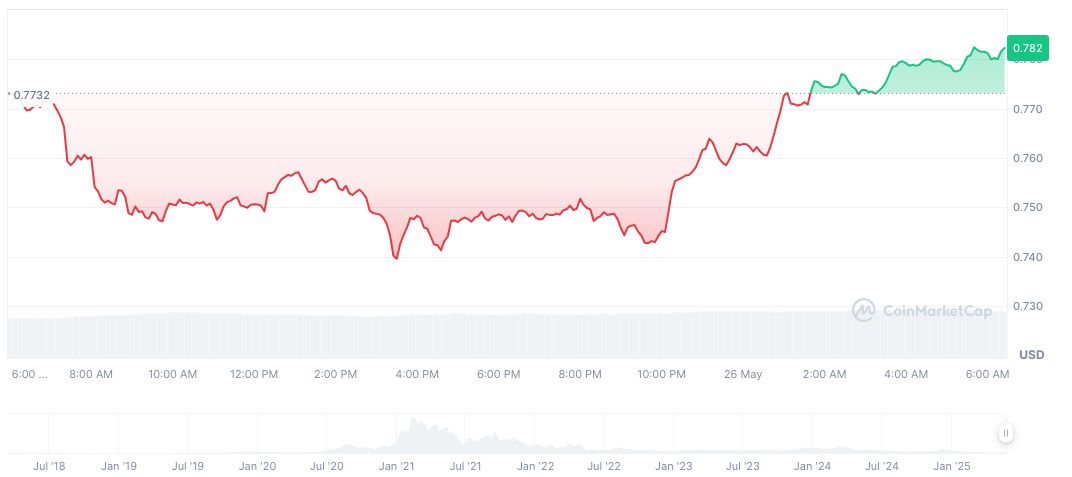 Synthetix наразі (SNX) торгується за $0,78 з ринковою капіталізацією $265,42 млн станом на 26 травня 2025 року. За останні 24 години ціна незначно зросла на 1,54%, а циркулююча пропозиція становить 339,47 мільйона SNX. Дані CoinMarketCap показують, що SNX зазнав падіння на -14,94% протягом попередніх 60 днів, що відображає коливання ринку.