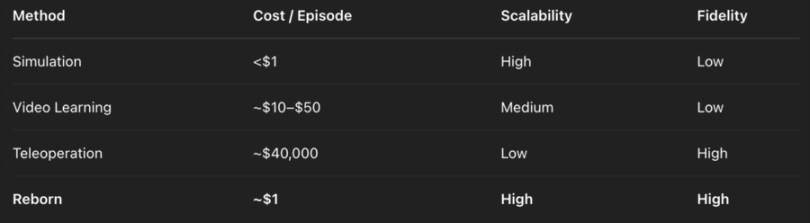 Reborn намагається отримати дані з реального світу з низькими витратами та високою ефективністю через децентралізовану модель, ефективно вирішуючи проблему Sim2Real.