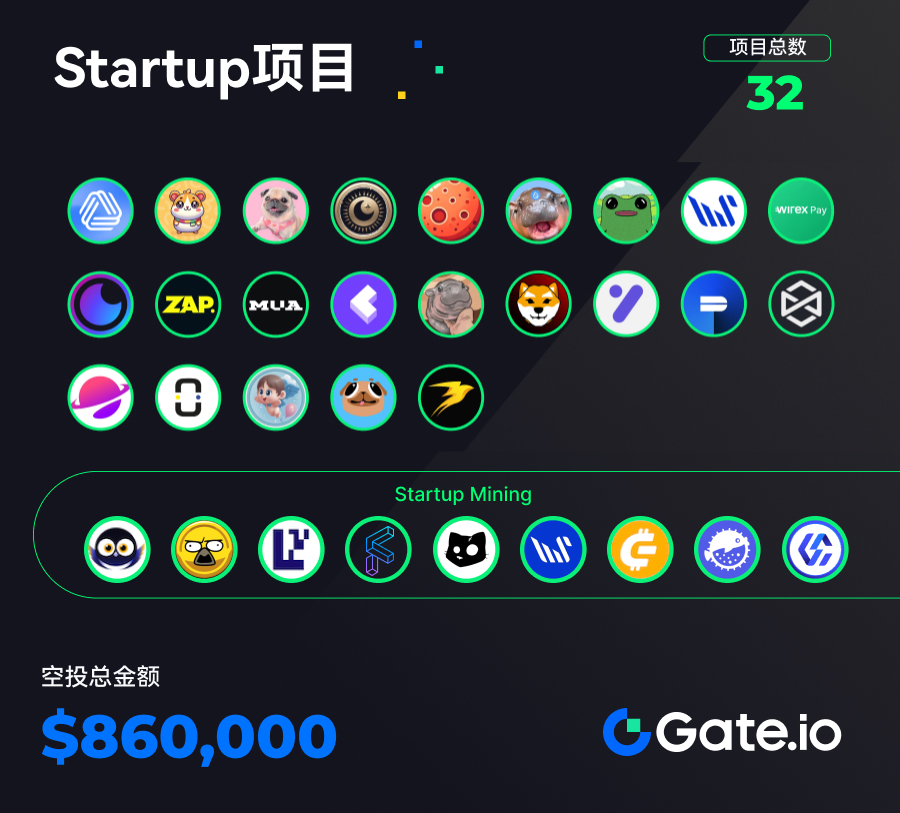 本周期Gate上线了30个新项目和32个Startup项目,总空投价值为86万美元。