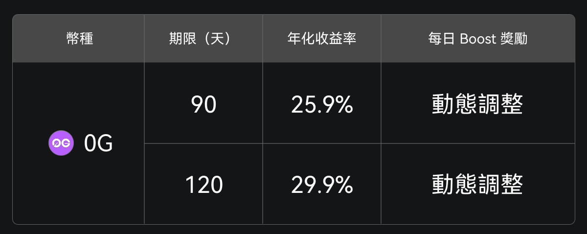 0G 定期理財收益由基礎年化收益與 Boost 年化收益兩部分組成,Boost 年化收益為在原有定期收益基礎上額外發放的獎勵。