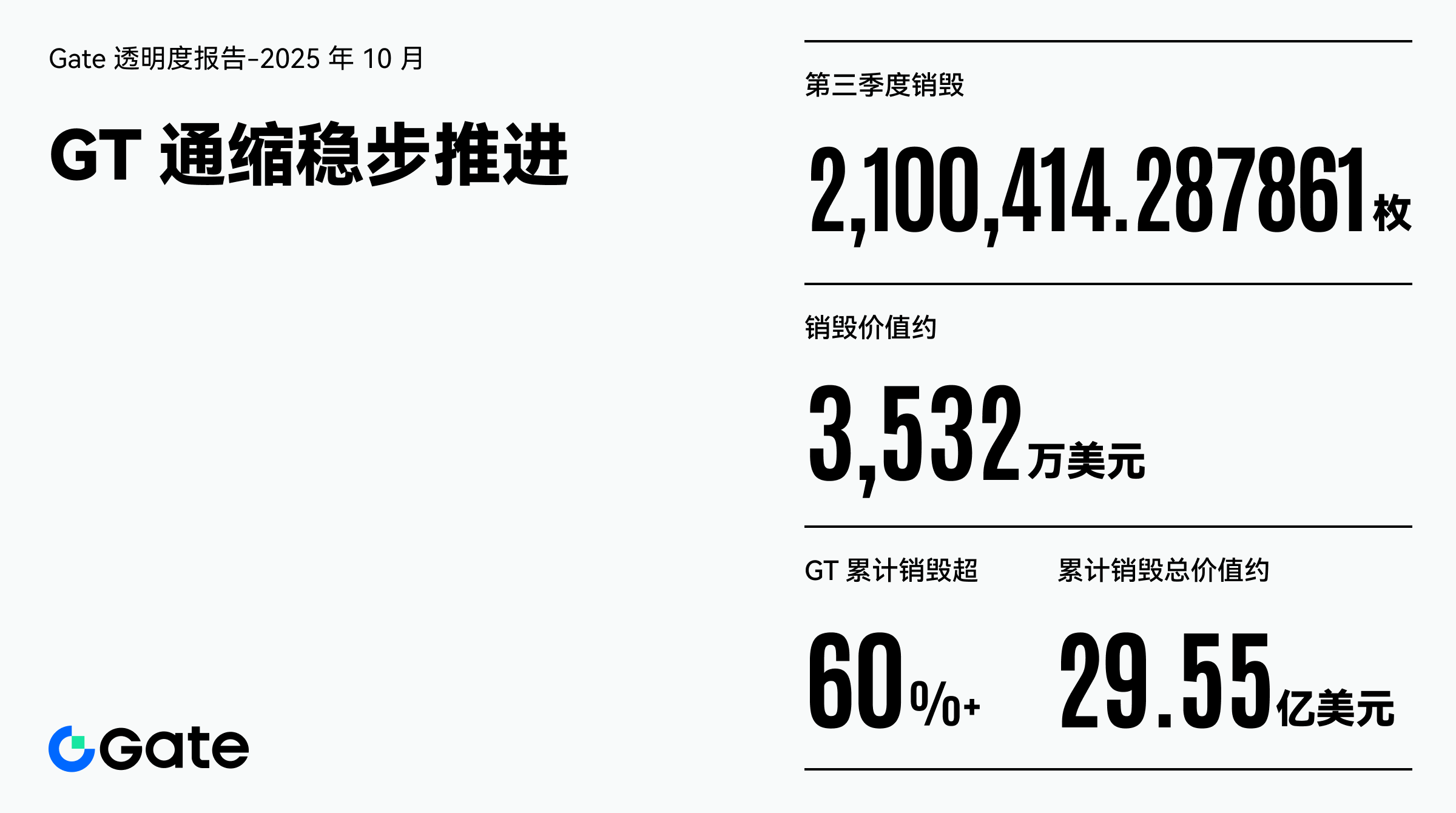 自 2019 年 GateChain 主网上线以来,GT 始终实施持续性通缩机制,通过定期销毁有效压缩供给,强化代币的稀缺性与价值支撑。进入下半年,Gate 围绕 “All in Web3” 战略加速生态布局,推出高性能二层网络 Gate Layer、去中心化永续合约平台 Gate Perp DEX 与链上发射平台 Gate Fun,构建从基础设施到应用层的完整生态闭环。通过通缩机制与生态扩张的双轮驱动,GT 的价值体系、应用场景与长期成长性正持续增强,为 Gate 生态发展注入坚实动能。